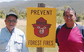 Adolf Samora and Paul Romero are the only two surviving members of the original Taos Pueblo Snowballs wildfire crew. This crew was fighting the fire in the Lincoln National Forest when Smokey Bear was found as a cub.